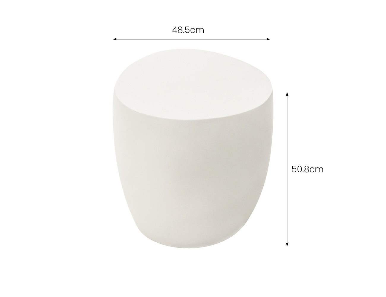 White concrete furniture has a water-based paint layer that can age over time. Indoor or covered outdoor use is recommended.