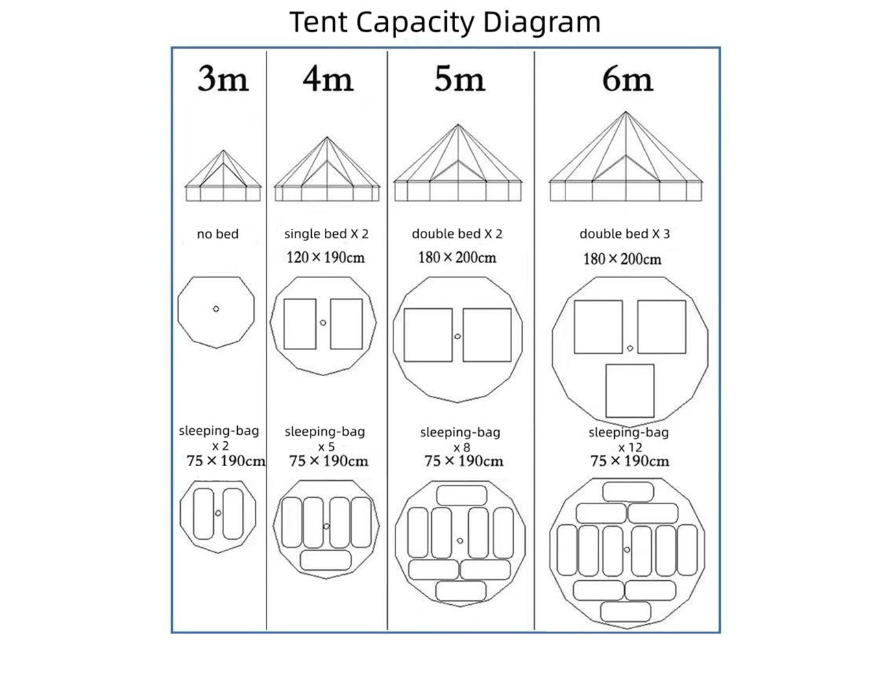 - Ground Sheet: 540gsm ripstop PVC (detached by a zipper) & waterproof