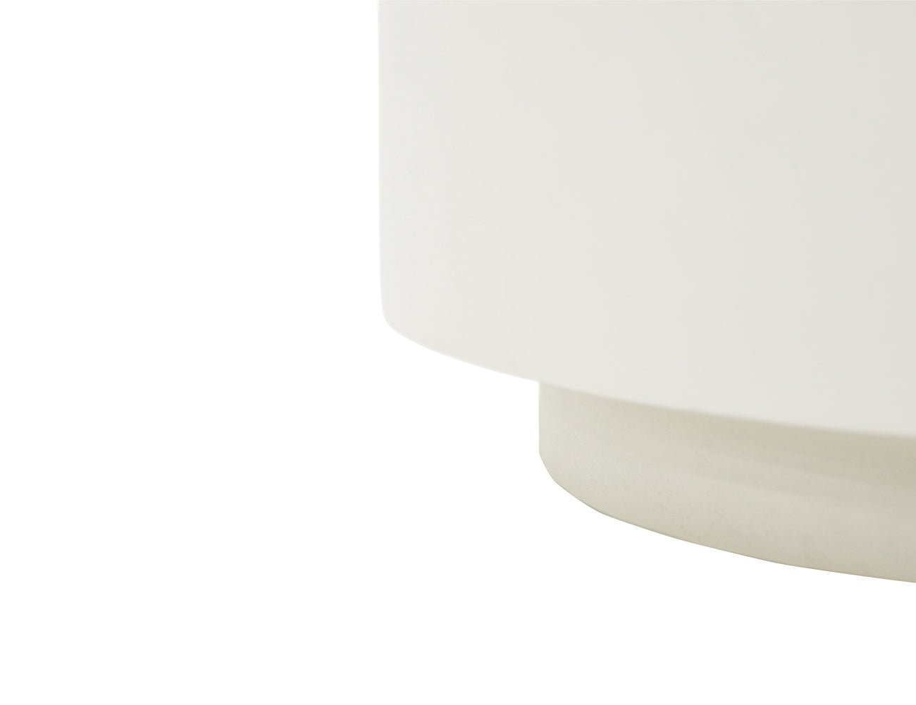 White concrete furniture has a water-based paint layer that can age over time. Indoor or covered outdoor use is recommended.