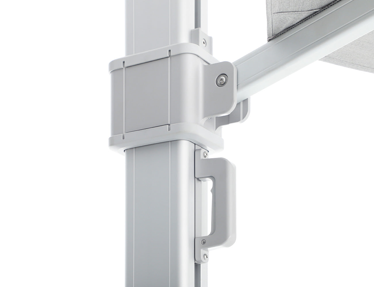 Featuring a sturdy aluminium pole with Matt anodizing for durability, it’s strong and can withstand light breezes and exposure to natural elements. Secured to a solid ground base it protects and stabilises the umbrella. The unique positioning of the pole on cantilever umbrellas keeps the space below the canopy unobstructed.