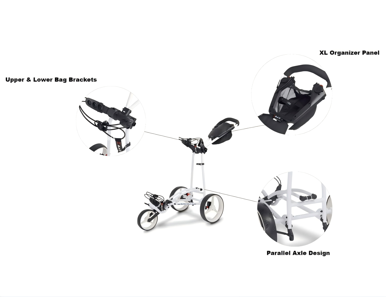 Superior stability on hilly terrain and improved balance for heavily loaded bags, ensuring a smooth and effortless push across the entire course