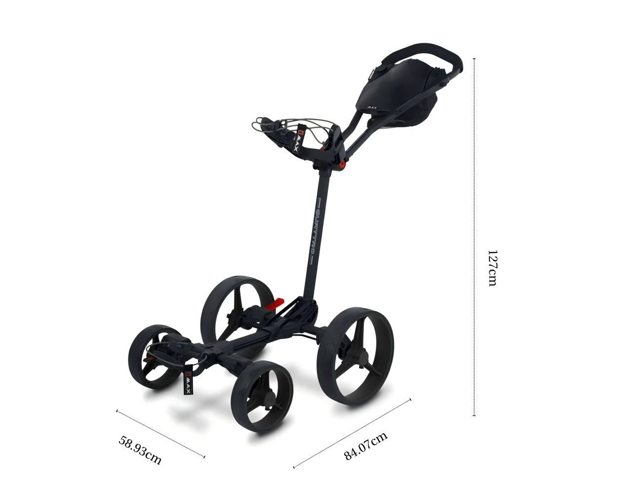 This compact, comfortable trolley is your reliable partner on any golf course. The intuitive FlatFold system makes setup and storage a breeze, while the large storage compartment keeps your essentials close at hand. Whether you're navigating hilly terrain or tight spaces, the Golf Trolley-Quattro delivers a smooth, hassle-free ride from tee to green.