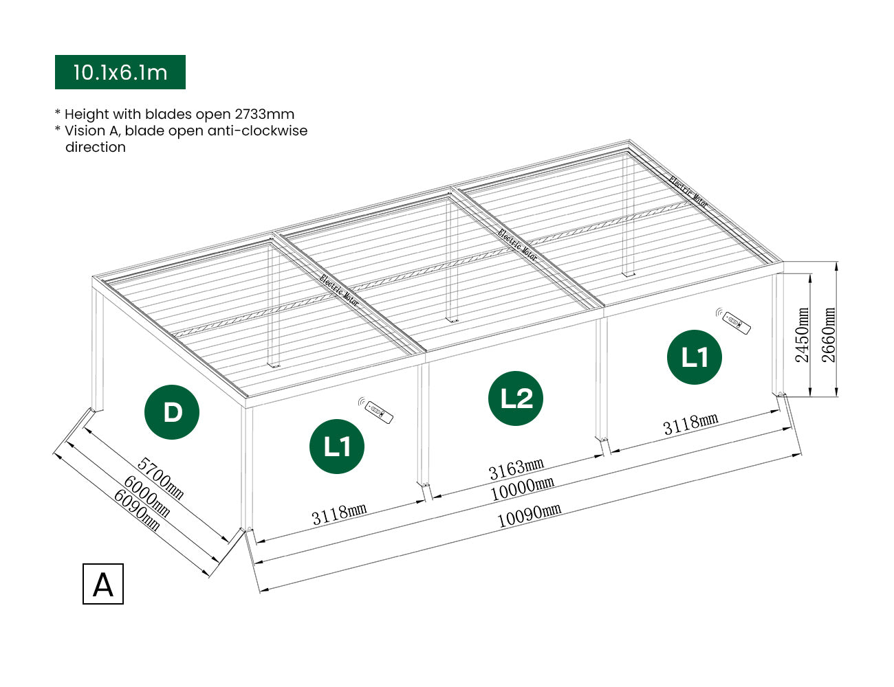 - Compatible with Pacific 4.1x4.6m、6.1x4.6m、8.1x4.6m、5.1x5.1m、6.1x5.1m、8.1x5.1m、6.1x6.1m、8.1x6.1m、10.1x6.1m Pergola.