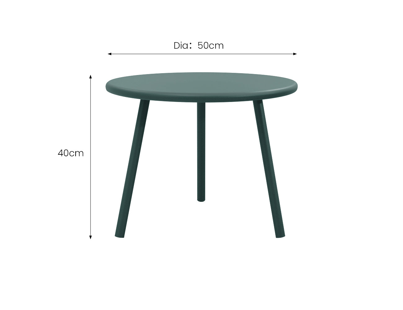 With a compact 50cm top and 40cm height, it fits neatly beside your lounge chair or sofa — just enough room for your coffee, a book, or a small plant. Available in Dark Grey, White, and Green, it slips easily into both indoor and outdoor spaces, adding a calm, effortless charm wherever it goes.