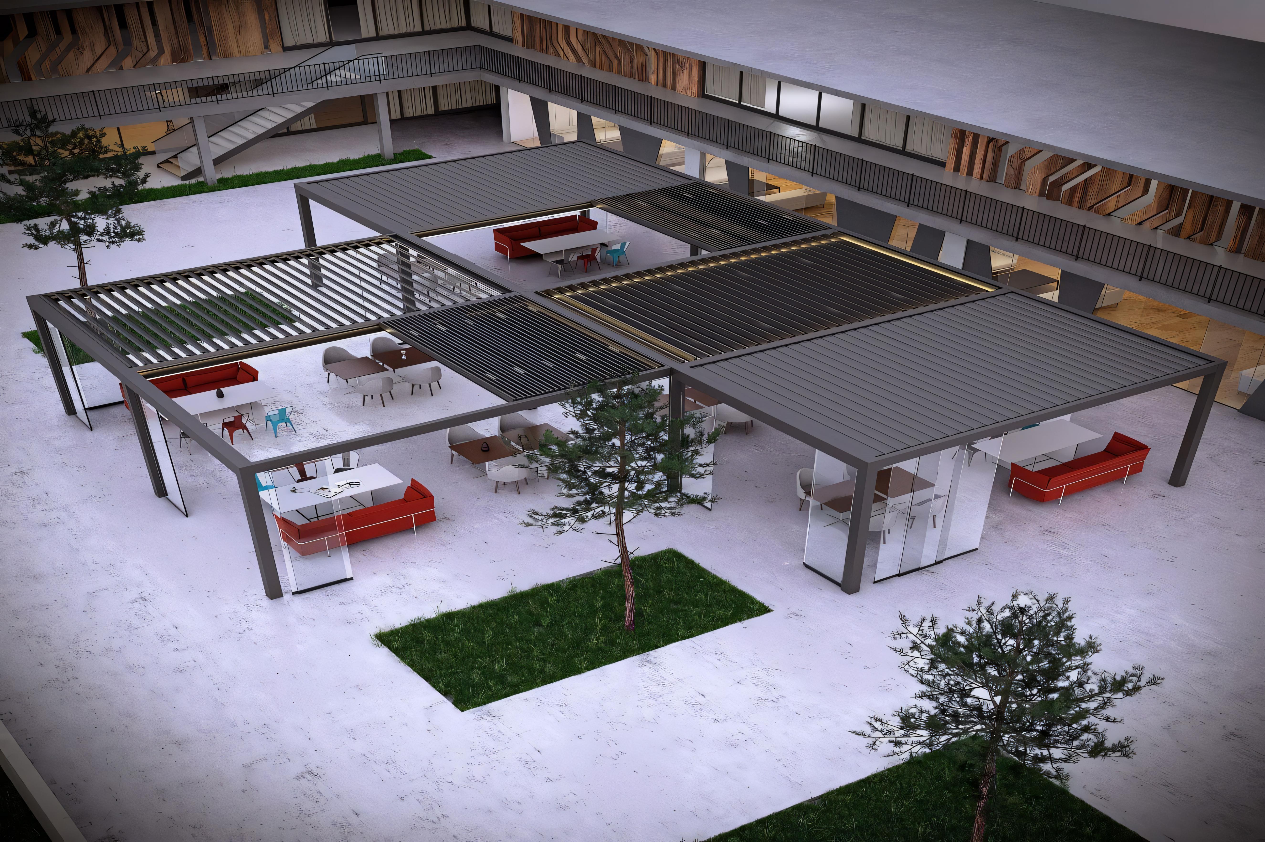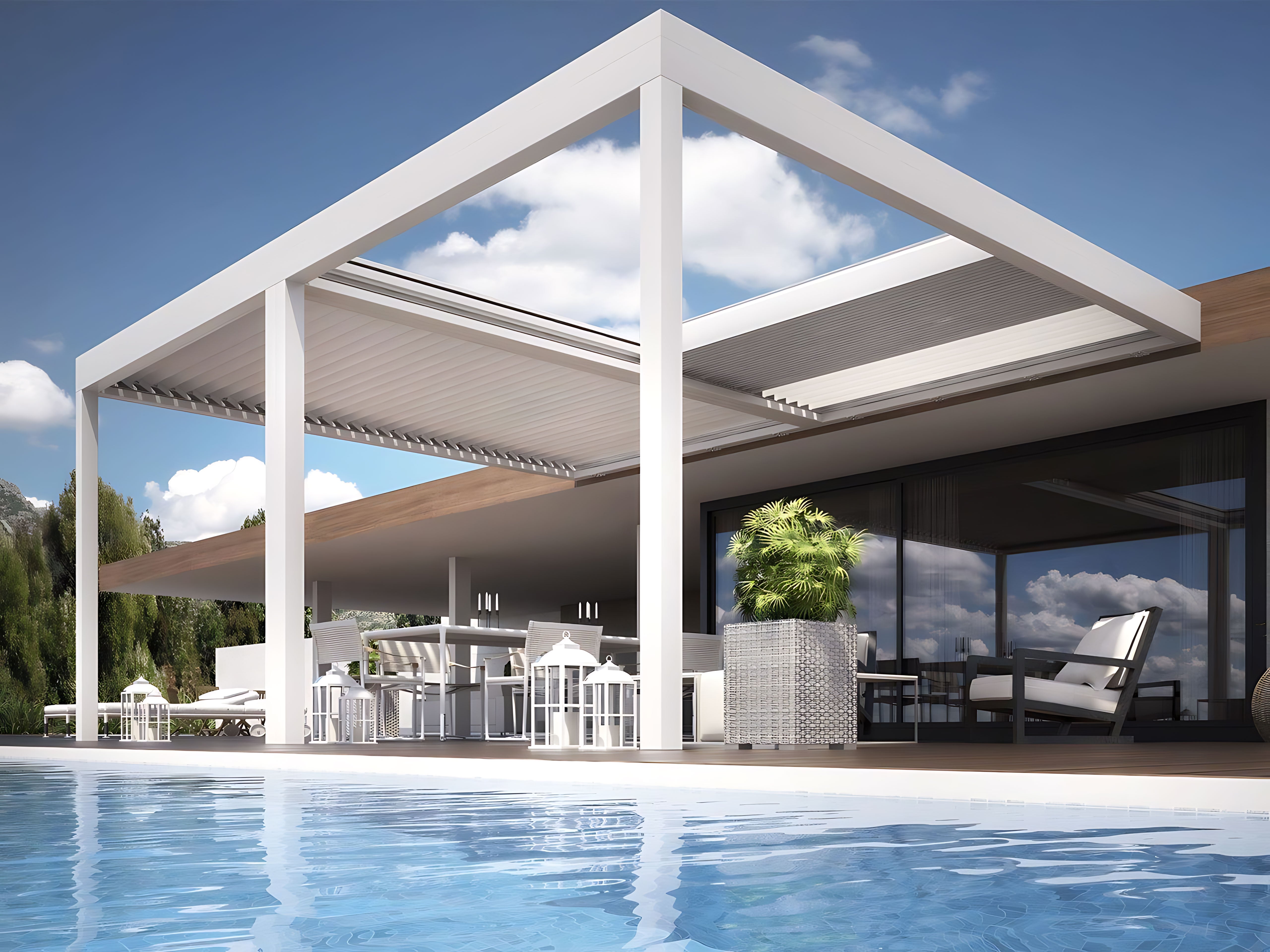 Upgrade your outdoor living with our retractable louvre roof pergola, built from durable, lightweight aluminum. Its modern design combines strength with elegance, creating a versatile space for relaxing, dining, or entertaining.