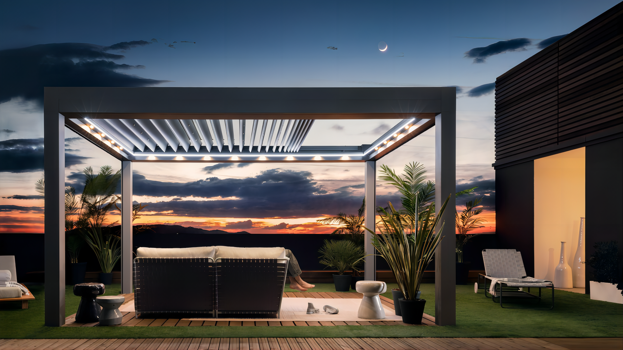 The retractable slats open up to 80% of the roof, offering an unobstructed view of the sky, allowing you to enjoy the sun or stars with ease.