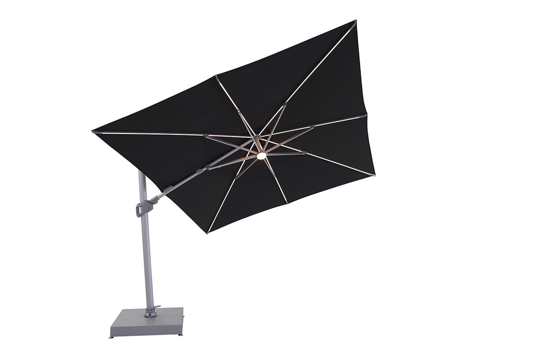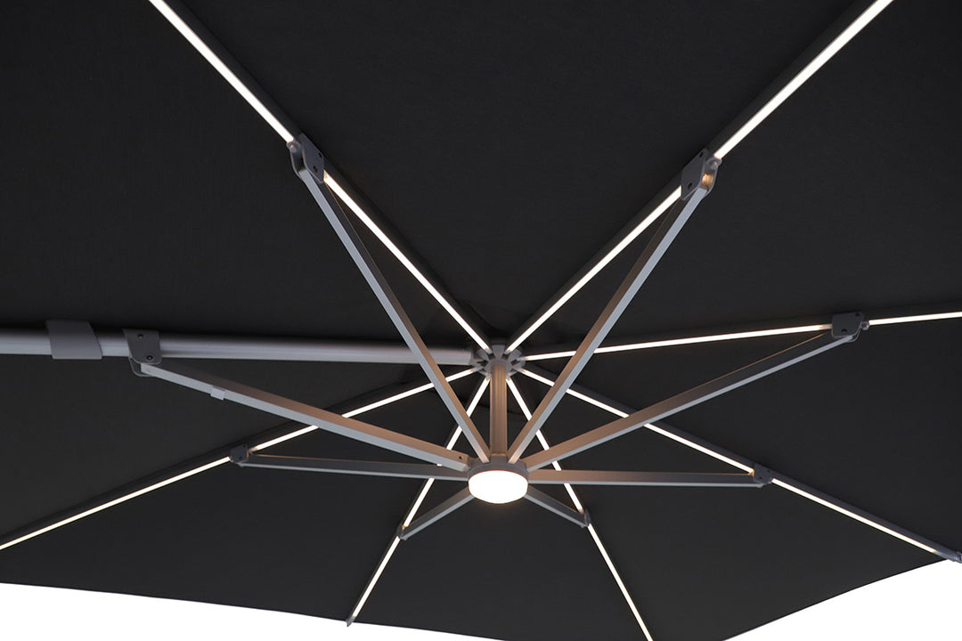 In addition to its versatile design and durable construction, this cantilever umbrella also features a convenient LED lighting system. The built-in LED lights add a warm and inviting ambiance to your outdoor living space, making it perfect for evening gatherings or late-night relaxation.