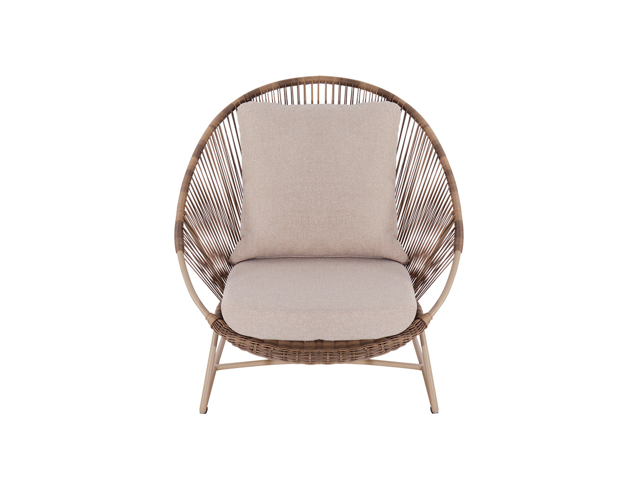 Some chairs invite you to sit. This one asks you to stay. With its rounded, nest-like shape and soft Olefin cushions, the Eagle leisure chair feels like your own little escape—right in your backyard. The champagne-toned frame catches the light just enough, while the twisted rope backrest adds a touch of texture you’ll want to run your fingers across.