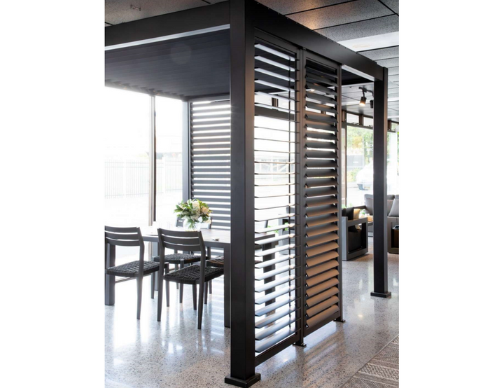 Utilise your backyard all year round and add a Louvre Shutter Wall to your Living Culture Louvre Roof System today!