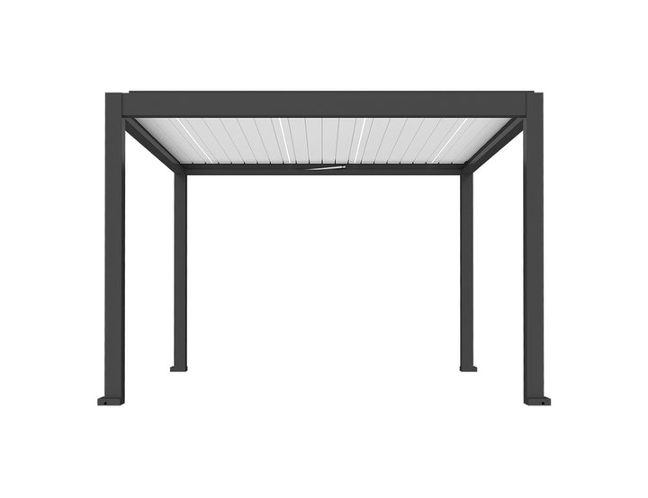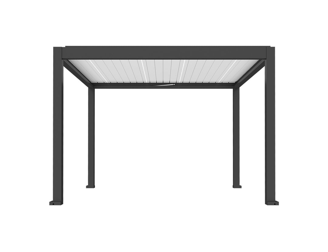 Spend more time outside without worrying about the weather. This pergola’s clean, modern lines suit any space, while its watertight louvres keep you sheltered through rain or snow. With blades that tilt smoothly up to 110°, you choose how much sun, shade, or breeze you want.