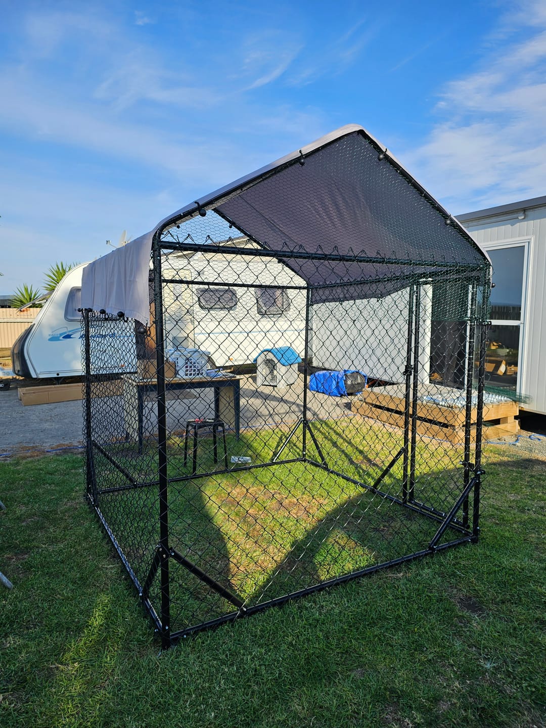 - Height should be at least 1.8 m to prevent jumping out; adding a roof improves security and weather protection. Our product stands at 2.3 m high, providing extra safety and comfort for dogs of all sizes.