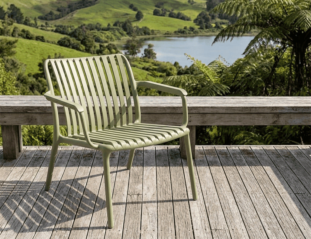 The Ashley Chair combines comfort and practicality. Its wide seat and gently curved back support you indoors or outdoors, while its clean design fits any space.