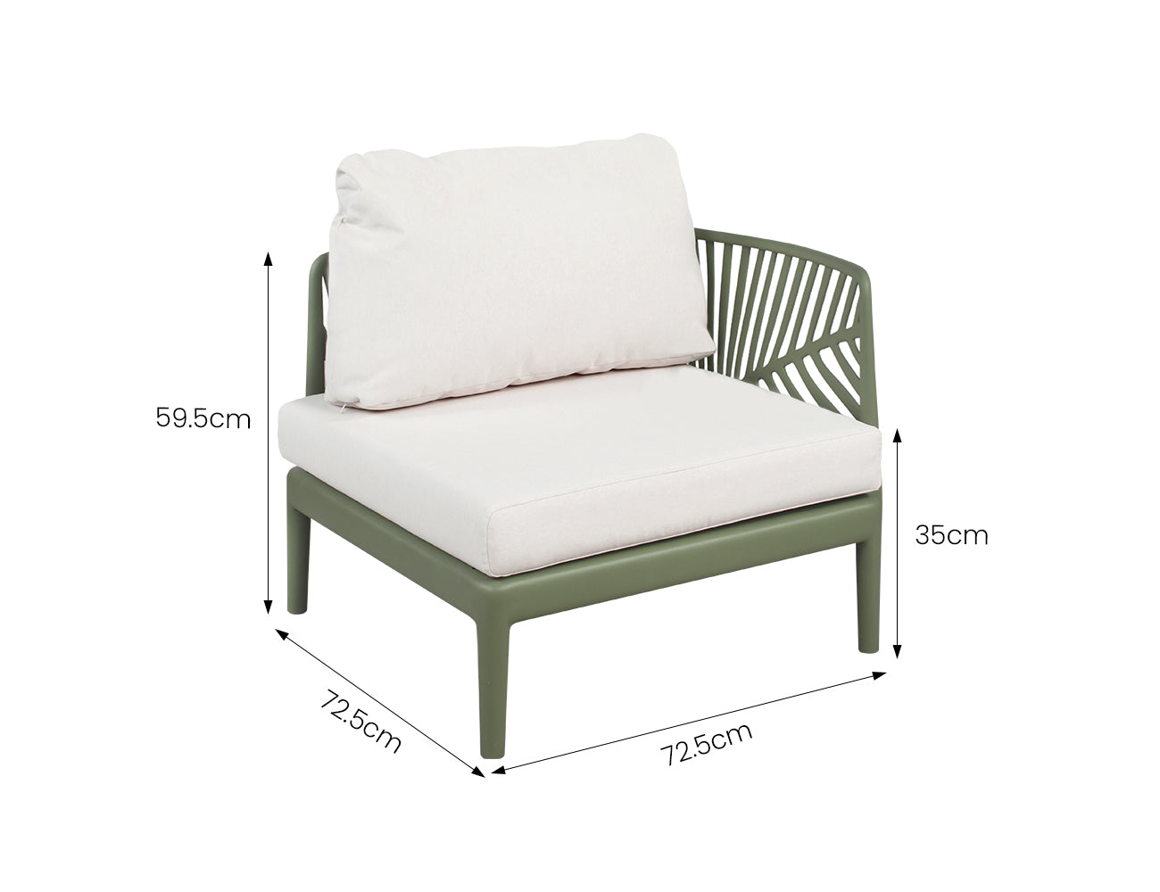 - Left Armchair: 72.5x72.5x59.5xSH35cm