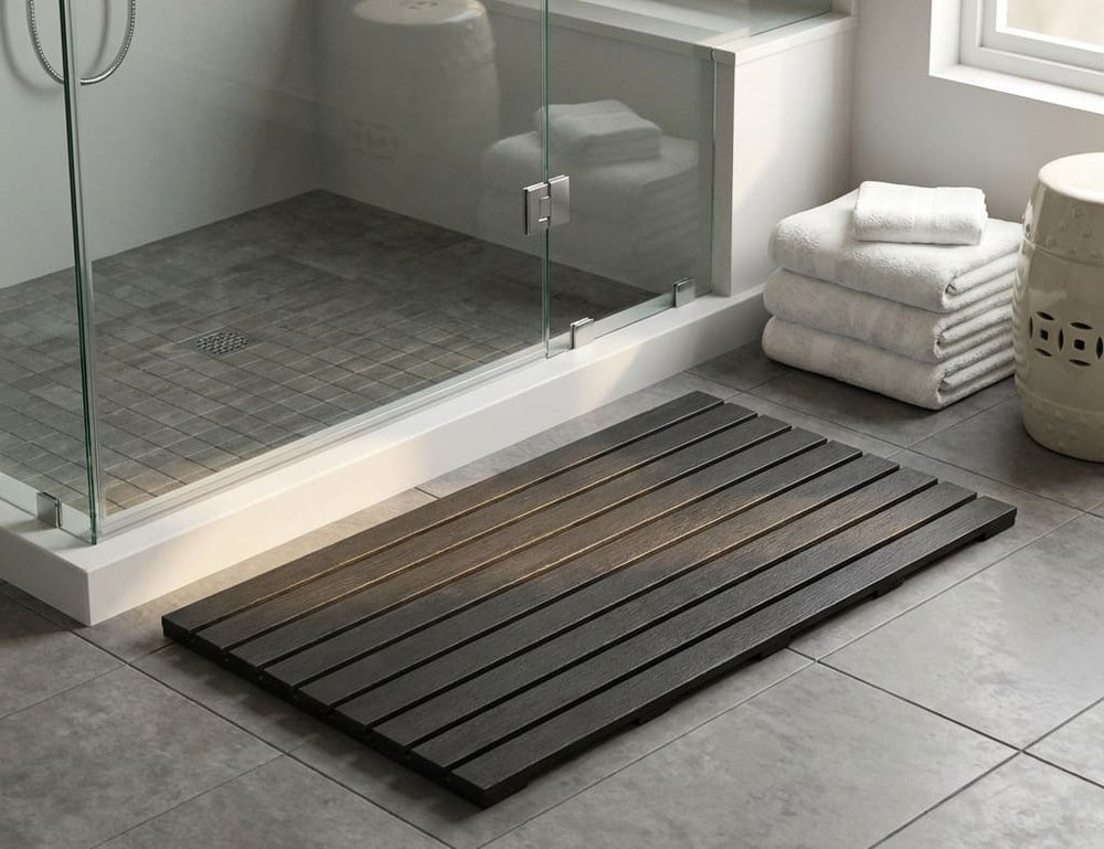 When it needs a clean, just rinse it with a hose and let it dry. No soggy fabric, no heavy timber, just a neat platform ready for the next shower.